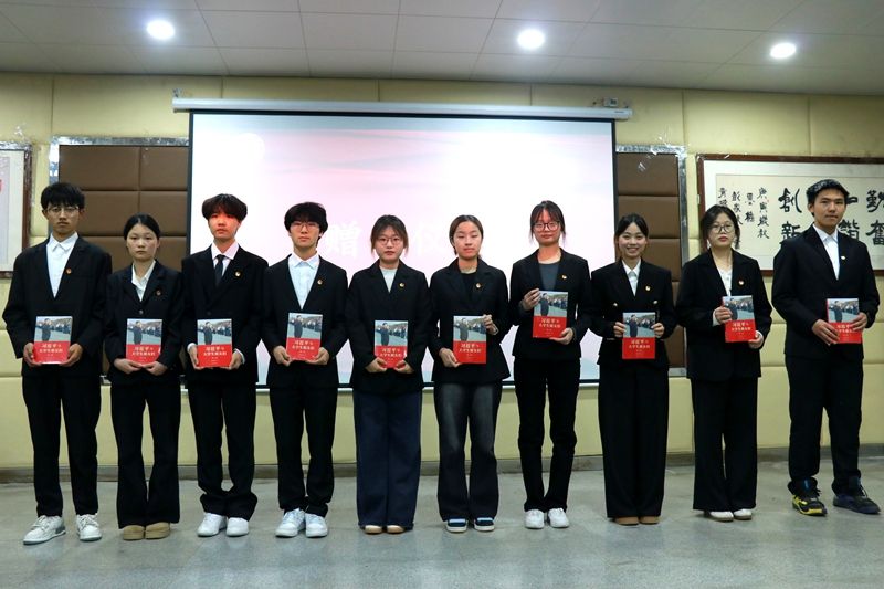 王军为本期“青马工程”的“雏鹰班”进行了授旗。同时,学院还为全体学员赠送了学习书籍《习近平与大学生朋友们(第二卷)》。