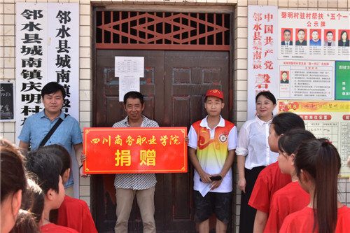 为积极响应共青团中央、上级团委关于开展暑期“三下乡”社会实践的号召,深入贯彻习总书记新时期扶贫开发重要战略思想,发挥社会实践在加强和改进大学生思想政治教育中的积极作用,在四川省教育厅、四川省商务厅、广安邻水县政府、学院党政的支持下,四川商务职业学院组织了以“喜迎十九大,青春扶贫路”为主题的大学生暑期“三下乡”社会实践活动。本次活动的服务团成员共24名师生,从7月7日至13日,历时7天,行程覆盖邻水县各乡镇所辖15个村。“扶贫”需“扶智”,“输血”也“造血”。在社会实践中,大学生服务团成员从“四好村”建设的素养提升出发,发放“新农村、新形象”宣传海报,协助贫困户做好房前屋后卫生,做出示范样本;在关爱留守儿童时,从全面发展的角度,为当地小朋友带去国学课程,传播传统文化;在村民提高锻炼能力方面,组织教授养身太极拳、全民健身舞;在贫困家庭走访中,服务团成员真切的感受到农村贫困户的艰苦生活和精准扶贫的必要性,为提供基础材料,本次活动填写调研问卷150余份,送出爱心物品400余件。
