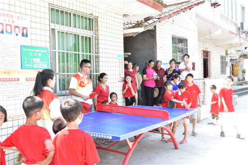 “住上好房子、过上好日子、养成好习惯、形成好风气”。7月10日,服务团一行走进邻水县城南镇磬明村,开始了为期3天的入村志愿实践,服务贫困户,陪伴留守儿童。磬明村拟定于今年“摘帽”,我院派出李志勤老师任驻村干部,参与精准帮扶工作。11日上午,在磬明村村委会操场举行了一场暖心的捐赠交接仪式。在前期的需求调查基础上,学院本次集中捐赠了以乒乓球桌、篮球架、户外投影仪、家庭常用品为主的学习和生活用品,希望为留守儿童们创造更好的学习、生活环境,激励他们努力学习回报社会。“情暖童心,快乐暑期”,在交接仪式后,国学传统文化《弟子规》正式开课。整洁的教室里座无虚席,一张张稚气的小脸上,写满了认真和对新知识的强烈渴望。“坚持运动,健康相伴”,为丰富村民日常生活,加强身心锻炼,服务团组织专业志愿者教授村民打太极拳、跳健身舞,举办乒乓球比赛,让村民们在今后的空闲时间有更多的休闲方式,舒缓身心。夜晚降临,服务团为村民们播放励志等喜闻乐见的电影,倡导村民拒绝赌博,形成健康的娱乐休闲方式。向“四好村”建设迈进,从物质文明、精神文明两面出发。