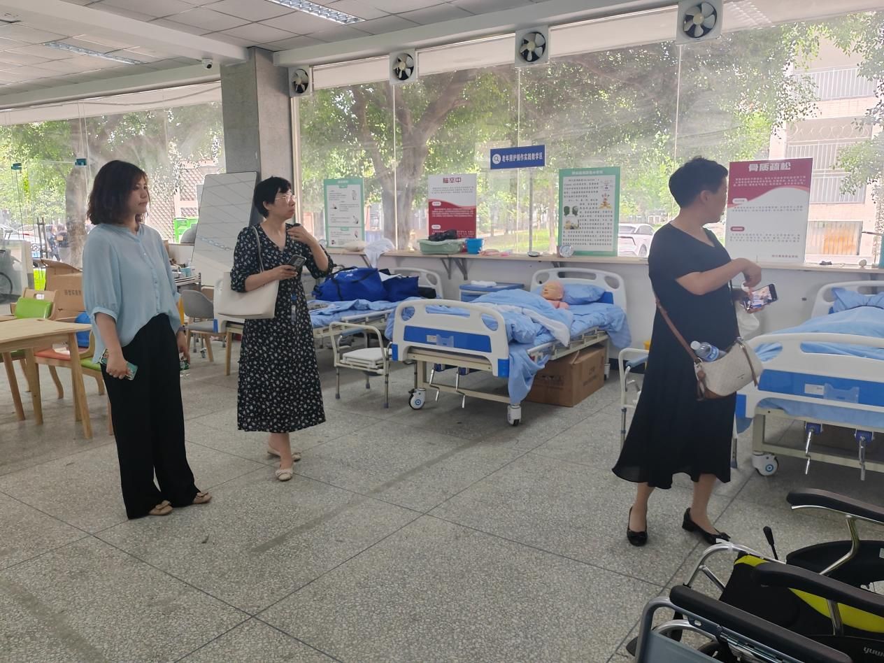 随后,在李静的陪同下,冯旗一行实地参观了我院康养实训室,对康养专业人才培养模式的创新、校企合作的方式以及实训室建设的思路等方面进行了热烈的讨论和交流。