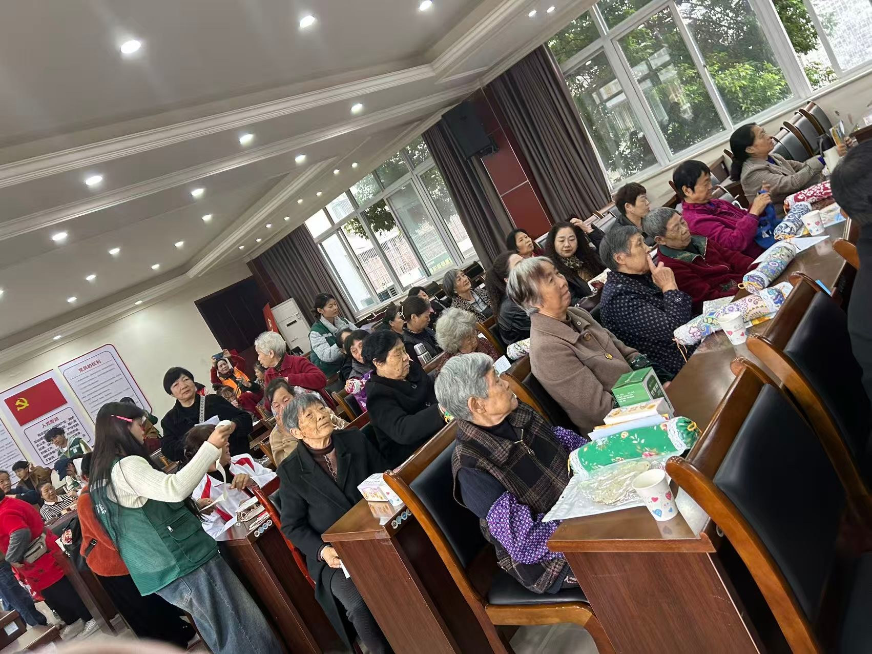 活动现场秩序井然,志愿者们有序引导老年人签到入场,两大核心环节接连展开。“巧手传民俗,重阳共安康”手工互动中,志愿者向老人们送上节日祝福,手把手演示灯笼DIY技巧,从骨架搭建到纹样粘贴耐心指导,不少老人完成作品后主动展示,志愿者及时用相机记录下这些笑脸,后续将冲印赠予留作纪念,让老人们在动手实践中感受重阳文化的独特魅力。“安全伴我行,守护夕阳红”知识科普环节,志愿者结合老年人生活场景,用通俗语言讲解居家用电安全、电信诈骗识别、突发疾病应急处理等内容,还针对重阳登高习俗补充户外防滑、秋季养生知识,通过趣味问答和小礼品调动参与热情,帮助老人更好地掌握安全常识