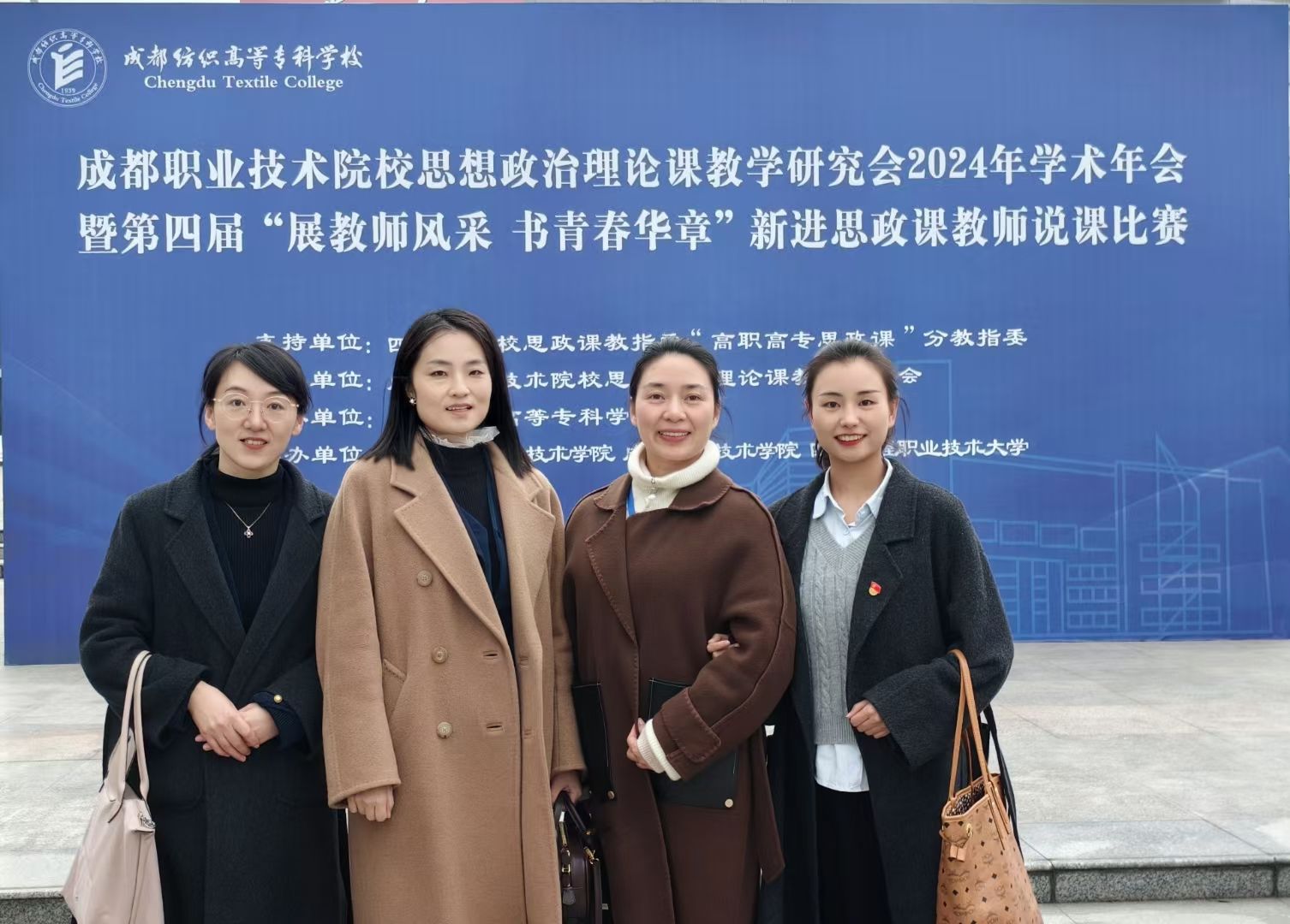 2024年12月19日至22日,成都职业技术院校思想政治理论课教学研究会2024年学术年会在成都纺织高等专科学校举办。我院廖飞宇、都中霞、张潇月等教师撰写的论文分别荣获特等奖、一等奖、二等奖。
