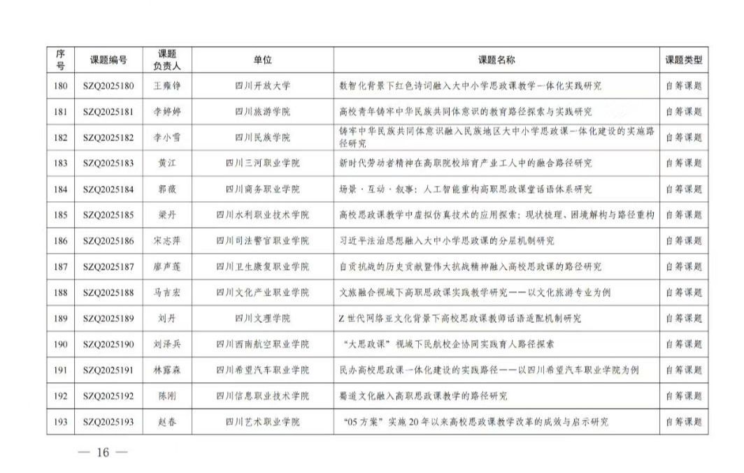 近日,四川省教育厅公布2025年四川省思想政治教育研究课题立项名单,我院教师郭薇获得立项。