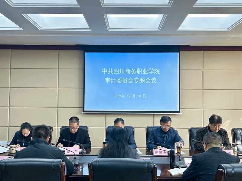 12月10日下午,中共四川商务职业学院审计委员会首次专题会议在和盛校区召开,党委书记唐柯出席并主持会议,院长高司华、党委副书记张军、纪委书记张序贵、副院长康璐、王军及党政办、纪委办、组织部、人事处、财务处、审计处的部门负责人参会。会议听取了审计处关于2025年学院经济责任审计及整改情况的汇报,审议了《智慧校园建设项目(一期)》和《教管一体化建设服务项目》两项专项审计报告,并讨论了2026年学院审计计划。会议强调,...