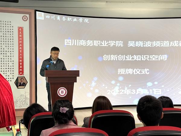 高司华致欢迎辞,他强调,吴晓波频道成都书友会创新创业知识空间在我院挂牌,是吴晓波频道成都书友会在全国范围内第一次与高校深度合作共建知识空间。希望大家以创新创业知识空间为载体,加强交流合作,进一步提升我院职业教育创新创业教育水平,进一步深入贯彻落实产教融合校企合作办学理念,进一步服务好区域经济社会发展,为国家培养新时代的接班人,为社会培养德才兼备、品学兼优的技术技能型人才。