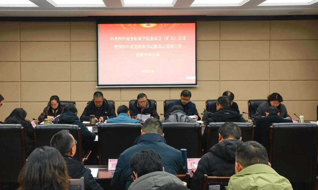 1月20日,四川商务职业学院党委(扩大)会议暨2025年度党组织书记抓基层党建工作述职评议会议召开。学院党委书记唐柯主持会议并讲话,他强调,要深入贯彻习近平总书记关于党的建设的重要思想和对四川工作系列重要指示精神,全面落实省委教育工委、商务厅党组决策部署,压紧压实管党治党政治责任,全面提高基层党建工作质效,为学院内涵式高质量发展提供坚强保障。