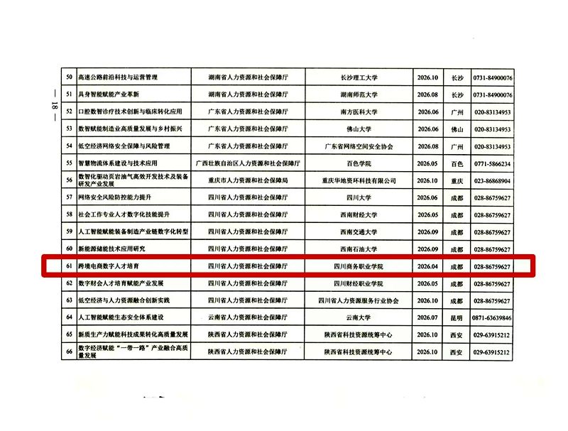 近日,人力资源社会保障部办公厅印发《专业技术人才知识更新工程2026年高级研修项目计划》,四川商务职业学院申报的“跨境电商数字技能提升”项目成功获批,跻身国家级研修项目行列。
