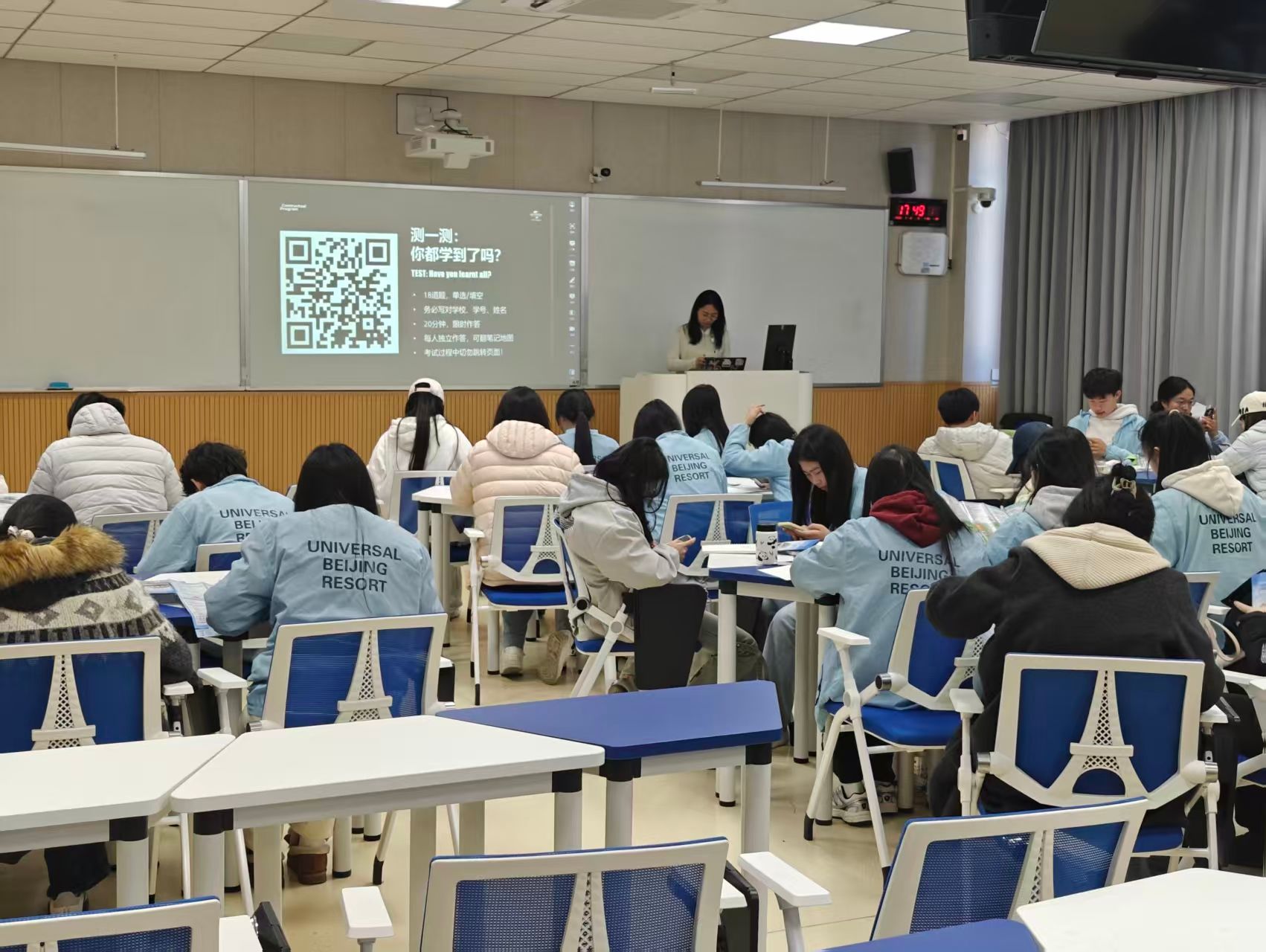 为深化校企合作,推进产教融合,提升学生培养质量,拓宽高质量就业通道,近日,北京环球度假区讲师团队走进学院,为旅游管理系经济贸易系2024级、2025级人才储备班同学开展就业技能提升赋能活动。